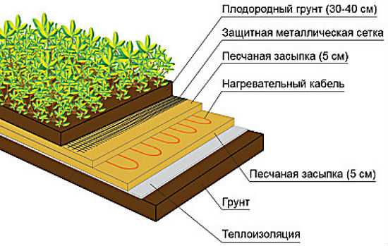 - Электрообогрев грядок кабелем, несложная в установке система, которая позволяет нагреть почву до необходимой температуры и поддерживать ее в таком состоянии;