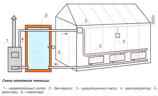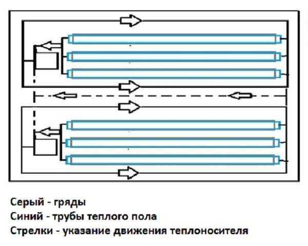 - направить в теплые полы воду из обратной магистрали от радиаторов, тогда получится полноценная отапливаемая теплица с подогревом грунта.
