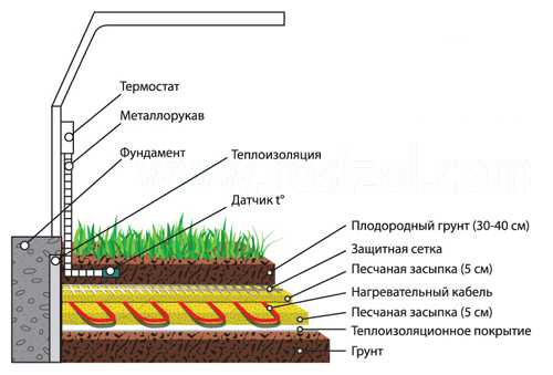 Примерная схема комбинации слоев при электрическом обогреве грунта