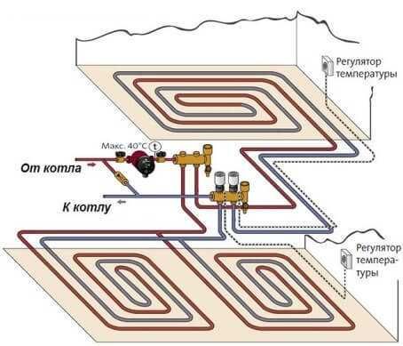- необходимо собрать смесительный узел с трехходовым клапаном и вторым насосом, причем часть теплоносителя пустить на радиаторы. Это дорого и доступно не для всех;