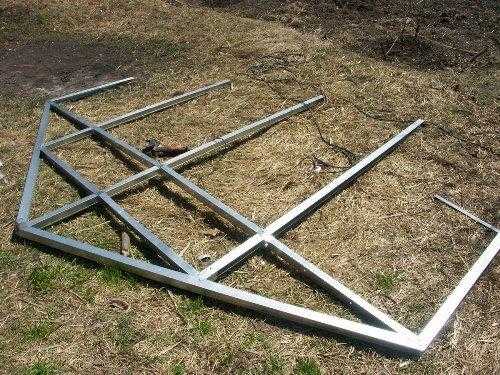 Далее, готовят рамы для стен и крыши, а также для двери, форточек парничка. Их собираем таким же образом, что и каркас самого строения. Не забудьте приварить петли в том месте на каркасе, где впоследствии будут прикреплены двери, форточки.