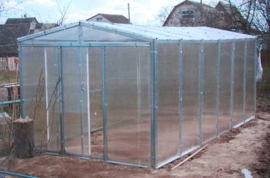 Иногда изготовление металлоконструкций теплицы выполняется именно под поликарбонат, а при этом сам каркас теплицы не предназначается к использованию круглый год.