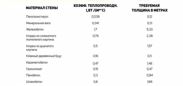 Таблица теплопроводности строительных материалов