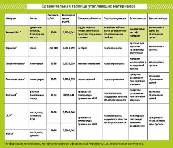 Сравнительная таблица утеплителей по теплопроводности, толщине и плотности
