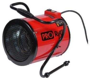 Электрическая тепловая пушка, в отличие от предыдущей модели достигает мощности в 5 квт, что позволяет более быстро нагреть помещение, но при этом, по заявлению производителя, она может увеличить температуру только на 40 градусов.