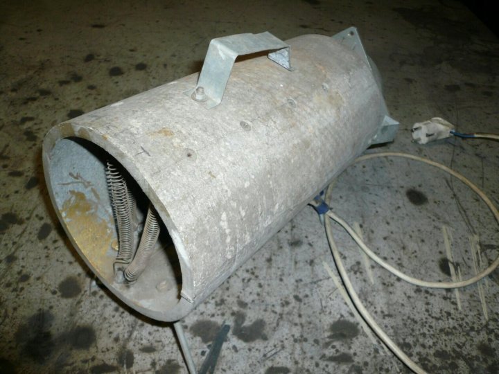 Самодельный ТЭН на 1,6 кВт из шести фрагментов спирали, которые практически полностью перекрывают просвет трубы, что обеспечивает быстрый нагрев воздушного потока