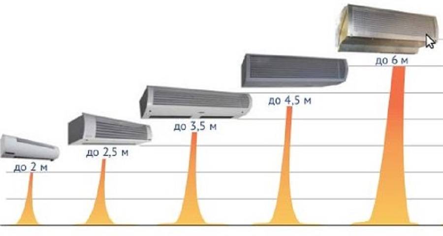 Тепловые завесы отличаются также и типом производительности. Они бывают с низким, средним и высоким воздушным напором.