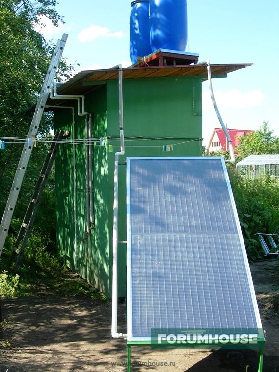 Но даже в лучшие времена он оставался холодным и очищенным. Поэтому я давно собирался его усовершенствовать, чтобы можно было мыться даже в прохладную погоду. Для этого нужно было утеплить кабину, наладить ее отопление и обеспечить горячей водой. Электричество для этой цели использовать не хотелось — дороговато получалось, да и частые сбои и скачки напряжения меня пугали.