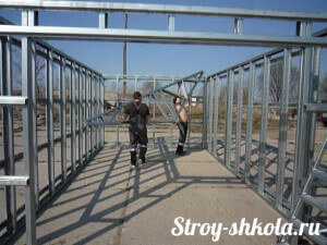 - Установка профильных труб, к которым прикрепляются горизонтальные перекладины (прожилины).