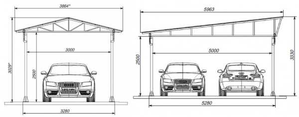- Создание проекта. Чтобы сделать чертеж будущего гаража, определяют габариты постройки. Этот параметр зависит от того, сколько машин будет в нем содержаться. Для 1 автомобиля средних размеров достаточно ширины 2,8-3,0 м, длины 4,7 м. В таком гараже даже останется свободное пространство для организации сезонного хранения. На этом этапе важно определить, какая должна быть крыша. Наибольшей популярностью пользуются односкатные и двухскатные варианты. Выбор зависит от снеговой нагрузки и среднегодового количества осадков в зоне строительства.