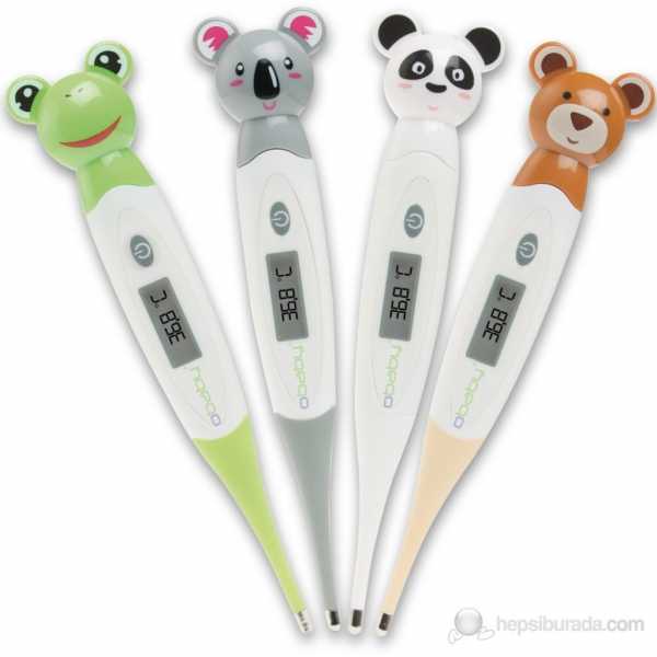 Чтобы маленькие детки не боялись мерить температуру, производители разработали специальные градусники. Они выглядят в форме игрушек или окрашены в яркие цвета. Для новорожденных можно приобретать термометры в виде сосок. Они значительно упрощают процедуру измерения температуры.