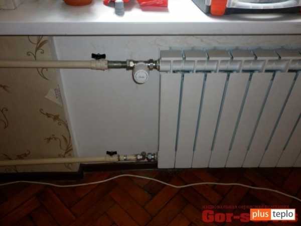 Если имеем дело с однотрубной отопительной системой, своими руками устанавливаем на радиаторы байпасы – перемычки из кусков труб небольшого диаметра. Принцип работы байпаса заключается в обеспечении циркуляции теплоносителя даже тогда, когда его подача из центрального стояка временно прекращена.