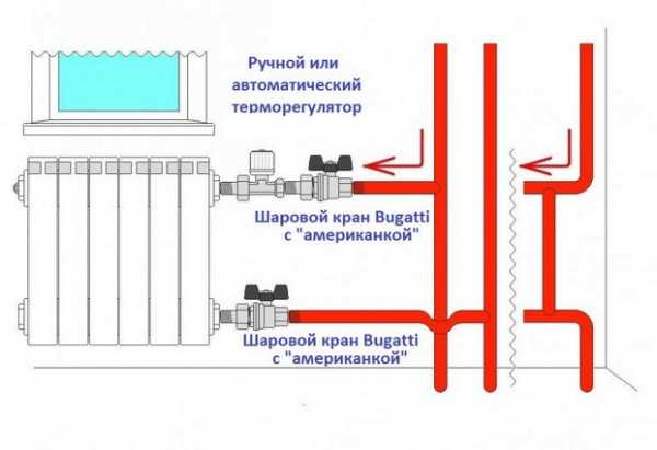 Шаровой кран на батарее позволяет открывать или закрывать подачу теплоностителя.Однако системы отопления отличаются по типу строения и требуют установки соответствующего оборудования. Поэтому в продаже имеются терморегуляторы для однотрубных или двухтрубных отопительных конструкций. Для однотрубных систем следует выбирать только устройство с байпасом – специальной трубной перемычкой, способствующей независимому движению теплоносителя в трубопроводе.