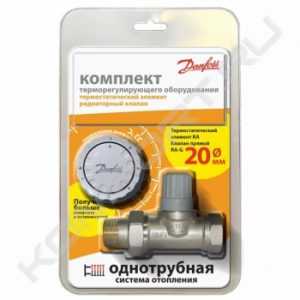 В зависимости от типа системы отопления и условий монтажа прибора, для управления потоком теплоносителя могут применяться комплекты клапан – термоголовка в различных сочетаниях. В однотрубных системах обогрева рекомендуется устанавливать клапаны с повышенной пропускной способностью и малым гидравлическим сопротивлением (маркировка изделия производства DANFOSS – RA-G, RA-KE, RA-KEW).