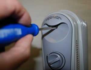 Масляный радиатор представляет собой неразборную конструкцию, поэтому нельзя нарушать герметичный корпус прибора, пытаясь заменить неисправный ТЭН. Самостоятельный ремонт масляного обогревателя возможен только на уровне шнура, вилки и блока управления. К радости домашних мастеров наиболее частые поломки случаются именно в этих местах. Чтобы не запутаться в запчастях, рекомендуется группировать все крепежи и детали и делать пошаговые фото во время работы – так будет легче собрать устройство в обратном порядке.
