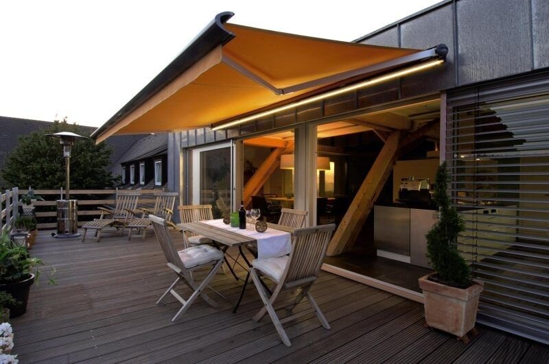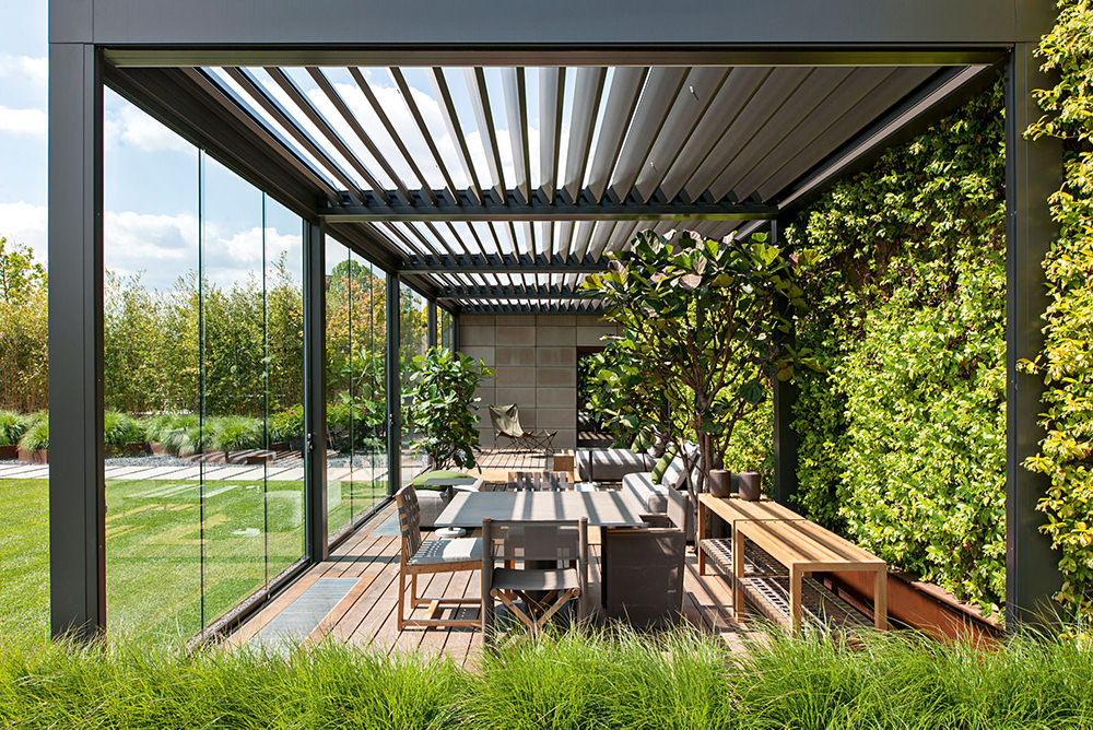 Это предполагает установку с одной стороны маркизы раздвижного типа, а с другой — стационарной кровли. В результате такого сочетания пространство становится более уютным.