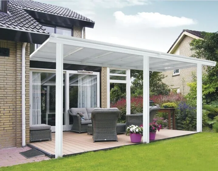 Эти стильные конструкции обычно имеют встроенные водосточные желоба и дополнительные приспособления для заполнения боковых и передних сторон по мере необходимости. Такие предметы, как вертикальные жалюзи, экраны на молнии, раздвижные стеклянные двери и т. д., если вы хотите закрыть некоторые или все стороны и переднюю часть.