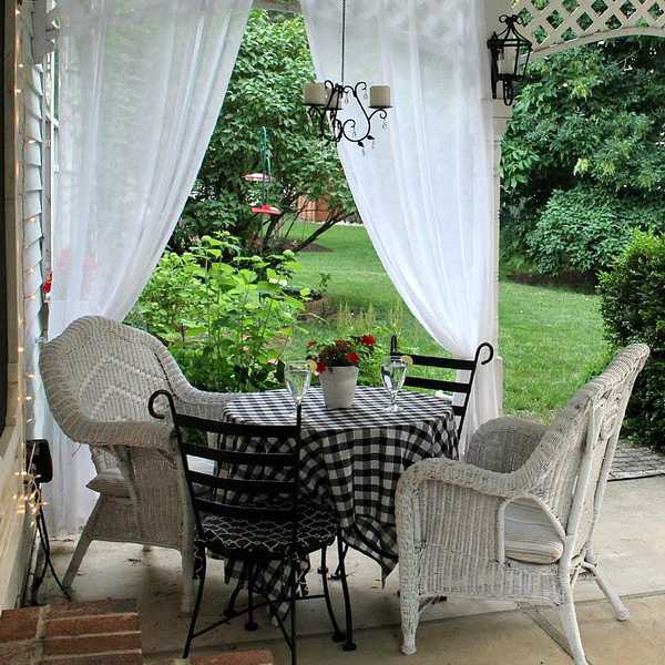 Маленькая терраса, плетеные кресла, кованый столик и пара стульев, бокал освежающего напитка… и воздушные занавески, они чуть колышутся от легкого ветерка, надежно прикрывают от солнца и создают уютный уголок… Вспомните, сколько раз подобная чудесная картина майского или летнего дня грезилась вам в холодное время года!..