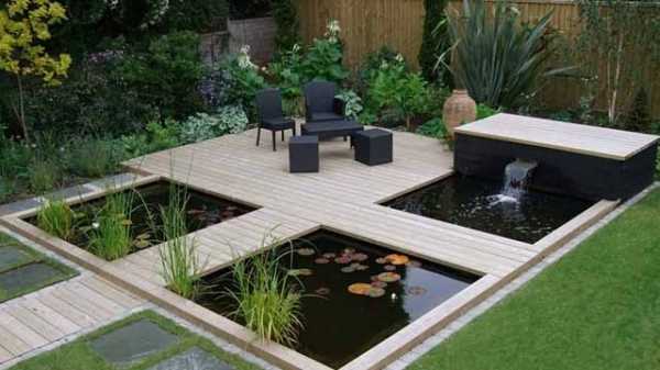 Плавающая терраса. Деревянная терраса над водоемом плавно переходит в красивую садовую дорожку.