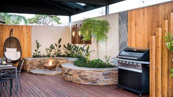 Рядом с террасой или верандой непременно постарайтесь оборудовать зеленый уголок с цветущими растениями и декоративным гравием, и продумайте место для барбекю. Летом так приятно пожарить на открытом огне нежное и сочное мясо, но наслаждаться им в комфортных условиях.