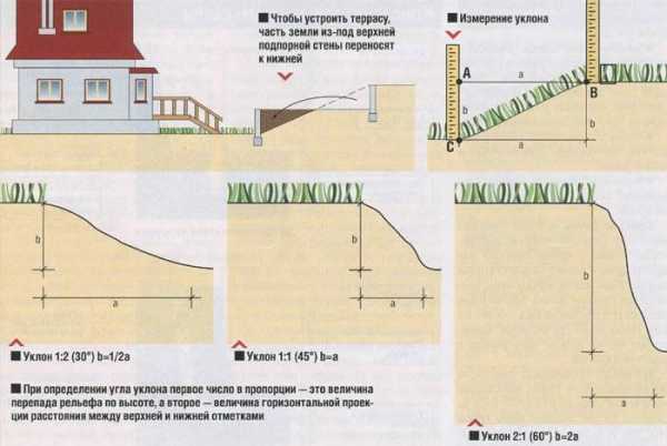 При строительстве нужно учесть, на каком рельефе будет располагаться настил. Низкие террасы сооружают на ровных поверхностях, а вот на склонах делают возвышения, чтобы выровнять местность – здесь можно соорудить даже ступеньки. Расположенная на них терраса получится очень оригинальной.