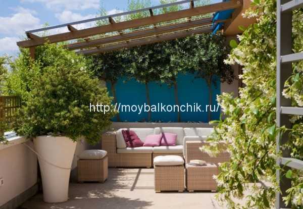 Если вы хотите придать своей террасе еще больше комфорта и уединенности, то используйте шпалеры или легкие деревянные перегородки.