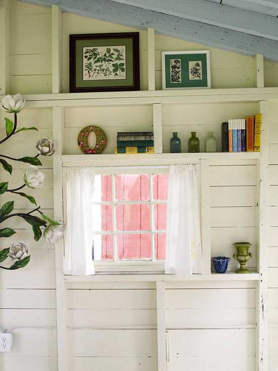 Дополнить интерьер рекомендуется стеллажом для книг и бумаг. Основной плюс идеи в том, что у вас постоянно будет возникать чувство уединения и гармонии во время работы, а это необходимо для умственного труда и сосредоточенности.