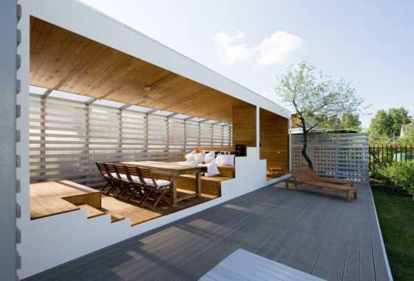 В зависимости от конструкции и дизайнерского решения террасы могут быть со стационарной крышей или маркизами, со стенами или без, одно- или многоуровневыми. В целом, непаханое поле для творчества.