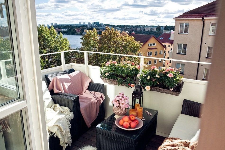 Такие балконы часто украшают цветами, а в качестве защиты от солнца используют большие тканевые зонты. Поставьте небольшой круглый стол и пару стульев, чтобы наслаждаться утренним кофе и проводить вечера в беседах за бокалом вина.