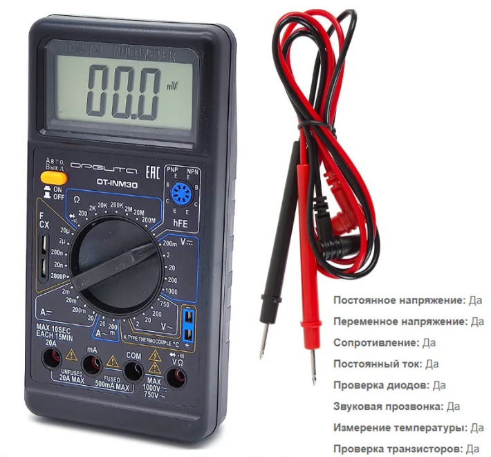 30 ΠΌΠΌ. ΠΠΎΠΌΠΏΠ»Π΅ΠΊΡ ΠΏΠΎΡΡΠ°Π²ΠΊΠΈ: ΠΌΡΠ»ΡΡΠΈΠΌΠ΅ΡΡ DT-830B; ΡΡΠΏΡ ΠΈΠ·ΠΌΠ΅ΡΠΈΡΠ΅Π»ΡΠ½ΡΠ΅ β 2 ΡΡ.; ΠΈΠ½ΡΡΡΡΠΊΡΠΈΡ ΠΏΠΎ ΡΠΊΡΠΏΠ»ΡΠ°ΡΠ°ΡΠΈΠΈ; ΠΊΠΎΡΠΎΠ±ΠΊΠ° ΡΠΏΠ°ΠΊΠΎΠ²ΠΎΡΠ½Π°Ρ.