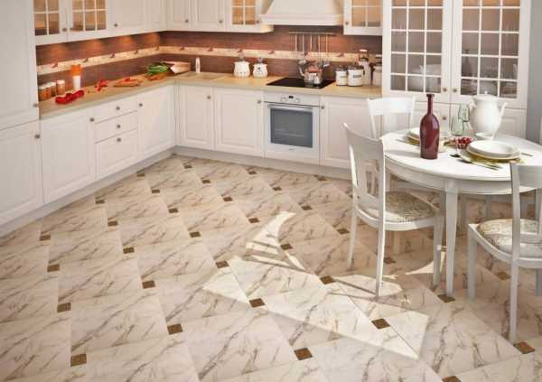 Напольная плитка из керамогранита на кухне