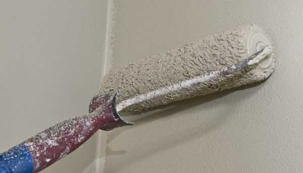 - Наносят второй слой. Для меньшего расхода сырья можно использовать валик с коротким ворсом или синим поролоном.