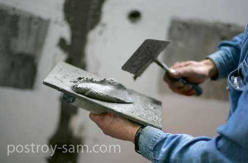 - В первом случае раствор просто наносят на стены, после чего разравнивают правилом.