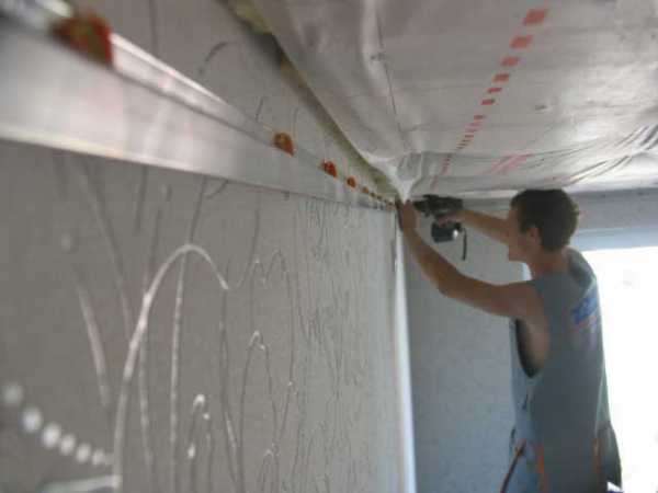 - По нанесенной разметке при помощи саморезов устанавливают профиль.
