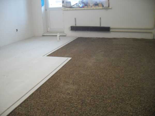 В общем виде, данный пол выполняется способом сухой изолирующей стяжки, то есть осуществляется засыпка мелкодисперсного заполнителя на изолированное основание с последующим обустройством чернового настила из листовых материалов.
