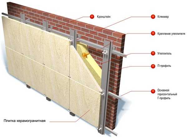 Схема вентфасада из керамогранита.
