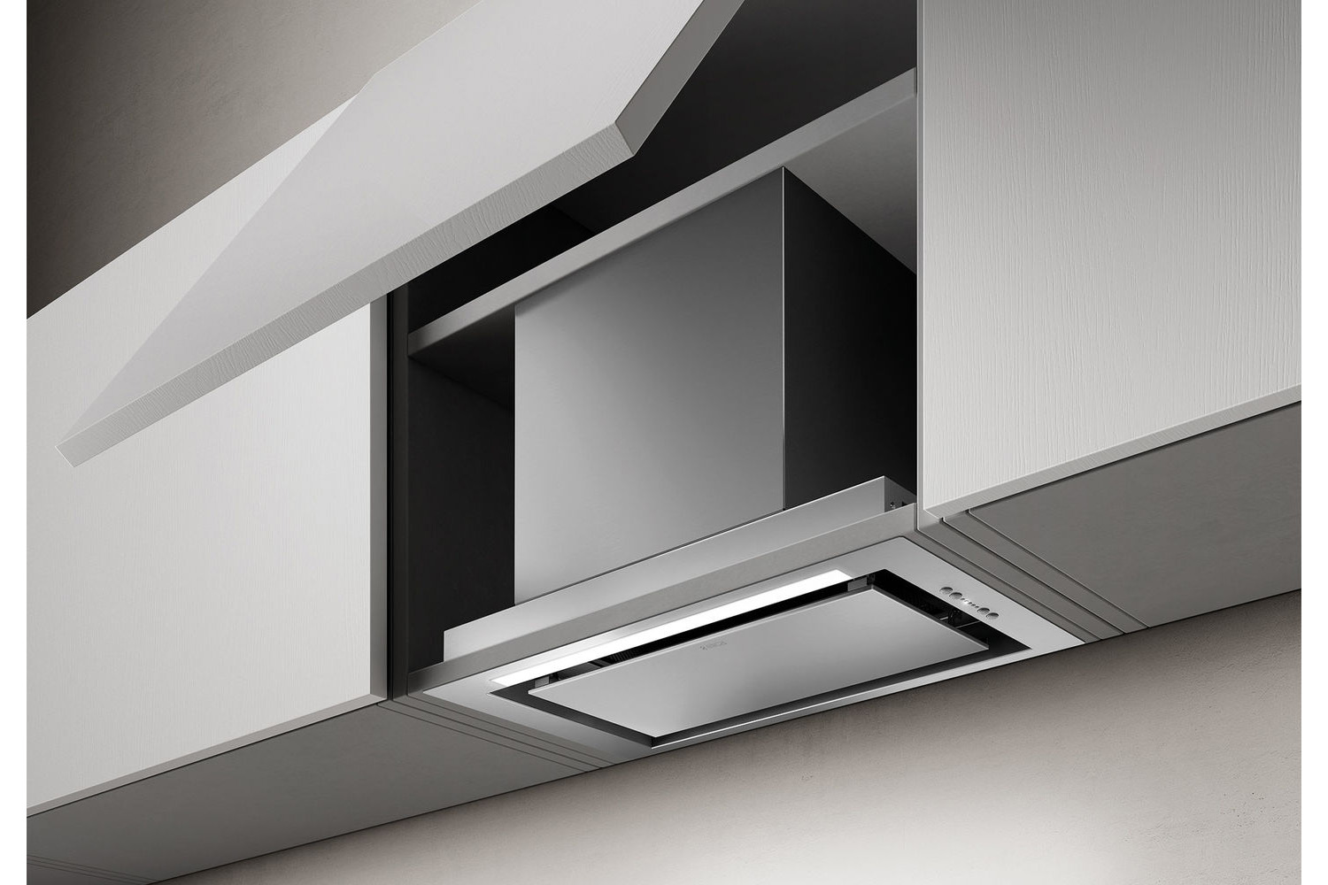 Доступные шириной 110 см и 150 см, корпус встраиваемых вытяжек спрятан в потолочной нише, чтобы создать на кухне красивое стильное представление заподлицо. Предлагая гибкость, а также отличную производительность вытяжки, эти незаметные встраиваемые потолочные вытяжки также могут быть встроены в дымоход или нишу. Полностью автоматические пульты дистанционного управления обеспечивают простоту использования.