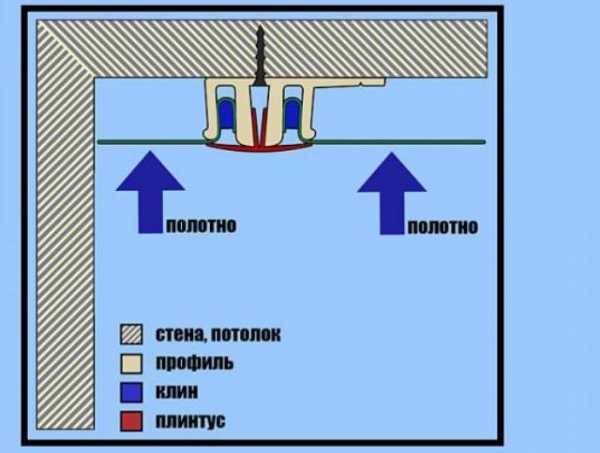 Тканевые потолки своими руками монтируются по следующему принципу: