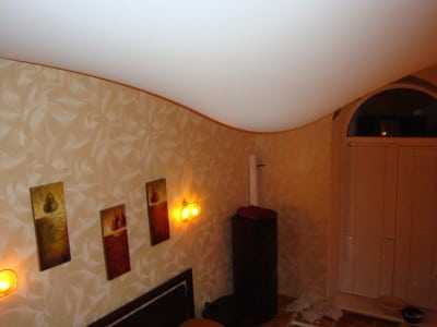 Если же в такой комнате проводить монтаж ПВХ пленки своими руками, то ее полотна придется между собой сваривать, – стандартной ширины изделия будет недостаточно.