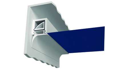 - Во-вторых, профиль, в который выполняется крепление тканевых потолков, изготовлен несколько иначе. Его паз очень тонкий и в некотором роде его можно сравнить с прищепкой, которая надежно фиксирует полотно в себе.
