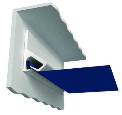 - Профиль в кулачковом багете состоит из подвижной и неподвижной части. Ткань при помощи шпателя заправляется между подвижным и неподвижным кулачками. Материал, в месте фиксации должен быть сложен вдвое (см. рисунок).