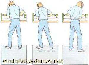 Держите инструмент так, чтобы его ручка составляла одну линию с предплечьем, а рука прижата к боку. Другой рукой держите полотно для перемещения его в сторону по упору. При грубой первоначальной обработке кисть положите на полотно сверху, охватив его пальцами снизу; для более тонкой работы используйте хват снизу, с большим пальцем наверху полотна. При любом хвате прижимайте предплечье и локоть к боку туловища.