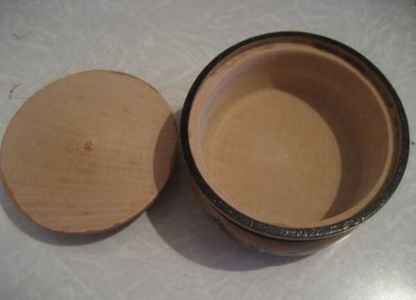 Диаметр крышки должен соответствовать диаметру внутреннего паза шкатулки. То есть, крышка должна свободно войти в паз.