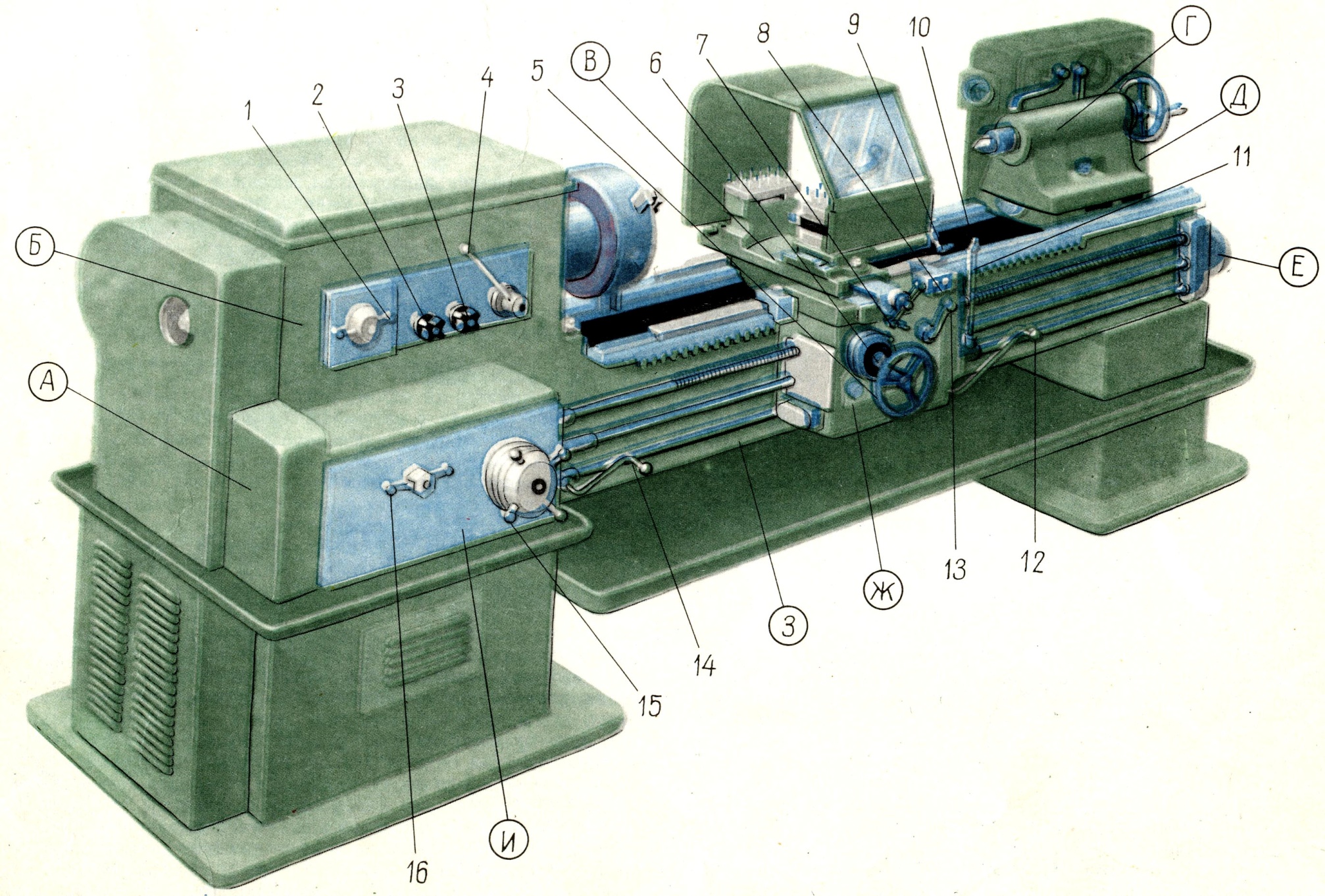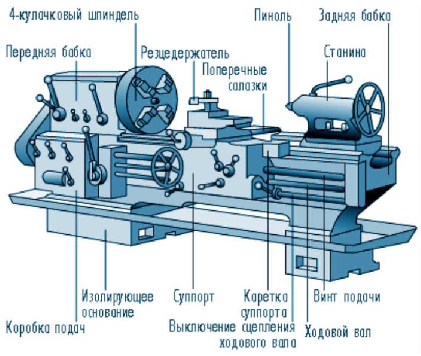 Строение токарно-винторезного станка