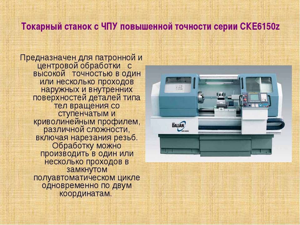 Токарный станок – станок, предназначенный для обработки заготовок из металла, дерева и прочих твердых материалов путем точения. За счет ряда регулировочных приспособлений обеспечивает высокую точность обработки.