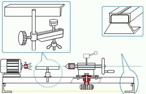 Простая схема узлов самодельного станка по дереву подскажет простой вариант изготовления станины, передней и задней бабок