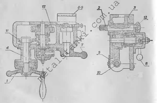 Включение ходового винта или ходового валика осуществляется поворотом рукоятки 5 (рис. 1).