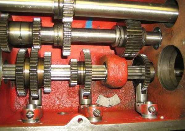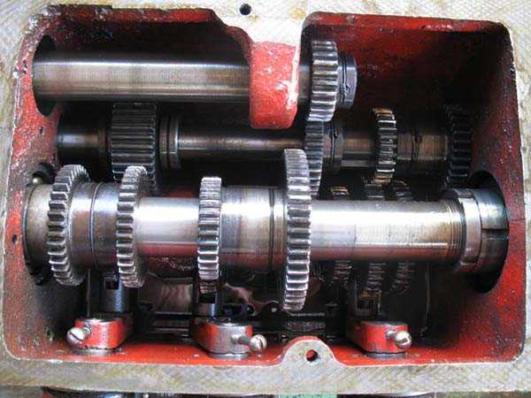 Параметры резьбы определяются за счет изменения настроек рукояти, которая размещается на лицевой стороне коробки передач. При ее вращении (а она имеет 3 положения) блок шестерня, двигающаяся по шлицам, зацепляет другую шестерню. На панели коробки находится еще одна рукоять, которая запускает ходовой валик и винт.