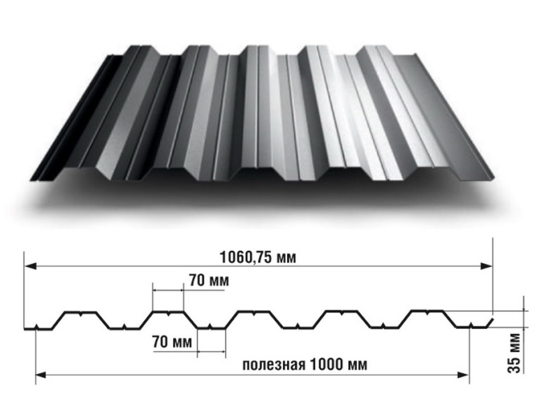 В строительстве используется оцинкованный профиль толщиной 4 – 10 мм. Шаг толщины листа составляет 0,5 – 1,0 мм.