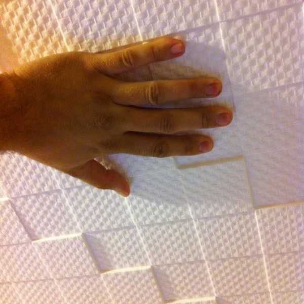 - плитку прикладывают к потолку вдоль одной оси, прижимают плотно, но без лишних усилий;